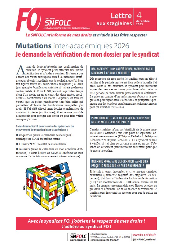 Posted on 1 décembre 20251 décembre 2025 By SNFOLC10 Aucun commentaire sur LETTRE AUX STAGIAIRES 2025/2026(Lettre 4)