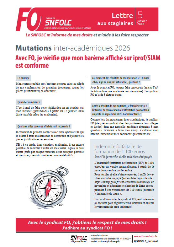 Posted on 10 janvier 202610 janvier 2026 By SNFOLC10 Aucun commentaire sur LETTRE AUX STAGIAIRES 2025/2026(Lettre 5)